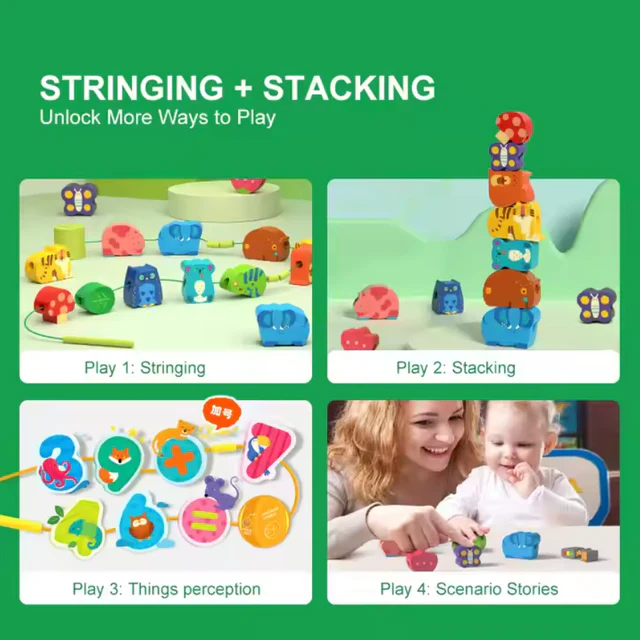 مجموعة خرز الربط من ميدير تساعد الأطفال على تطوير مهارات قوية في الحركة الدقيقة، والمعرفية، والإدراك البصري، وتعزز تنسيق اليد والعين. هذه الألعاب رائعة لتطوير الأطفال، وحجم خرزنا كبير بما يكفي للأطفال الصغار. يجب استخدامها تحت إشراف شخص بالغ.