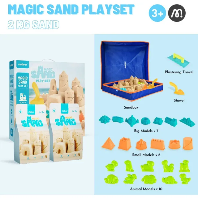 مجموعة ألعاب الرمل السحري من ميدير هي وسيلة ممتعة وآمنة للأطفال للاستمتاع بالإبداع اللا محدود. هذا الرمل الحركي القابل للضغط يلتصق بنفسه ولا يلتصق باليدين، مما يتيح تشكيله وصياغته بسهولة في أي تصميم. قوامه الناعم والمطاطي يتدفق مثل سائل بطيء الحركة ويترك اليدين جافة تمامًا. مثالي للأطفال الذين تزيد أعمارهم عن 3 سنوات، يعزز هذا الرمل التفكير الإبداعي والخيال بينما يوفر تجربة خالية من الفوضى. إنه مثالي للعب داخل المنزل أو في الهواء الطلق ومصنوع من مواد غير سامة وخالية من الروائح، مما يضمن ساعات من المرح الآمن.