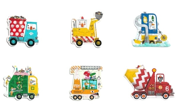 👜 يشمل: شاحنة (قطعتين)، حفار (قطعتين)، آلة تنظيف الشوارع (3 قطع)، شاحنة نفايات (4 قطع)، رافعة (5 قطع)، خلاط إسمنت (6 قطع)