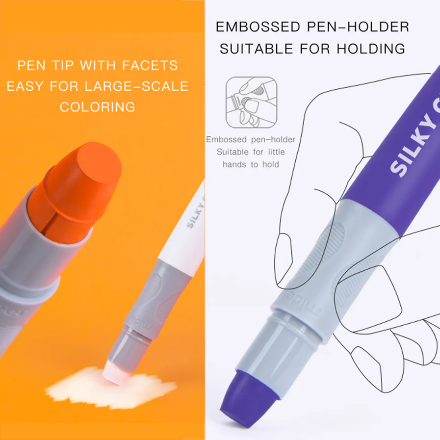 ألوان ميدير الحريرية خالية من الغبار وناعمة كالحرير، مثالية للرسم على الزجاج، البلاط، الخشب، والسيليكون. قابلة للغسل وغير سامة، سهلة التنظيف من الأسطح والأقمشة. تأتي مع علبة قابلة للسحب لتقليل الفوضى. تلهم الأطفال للتعبير عن خيالهم وإبداعهم. 🎨