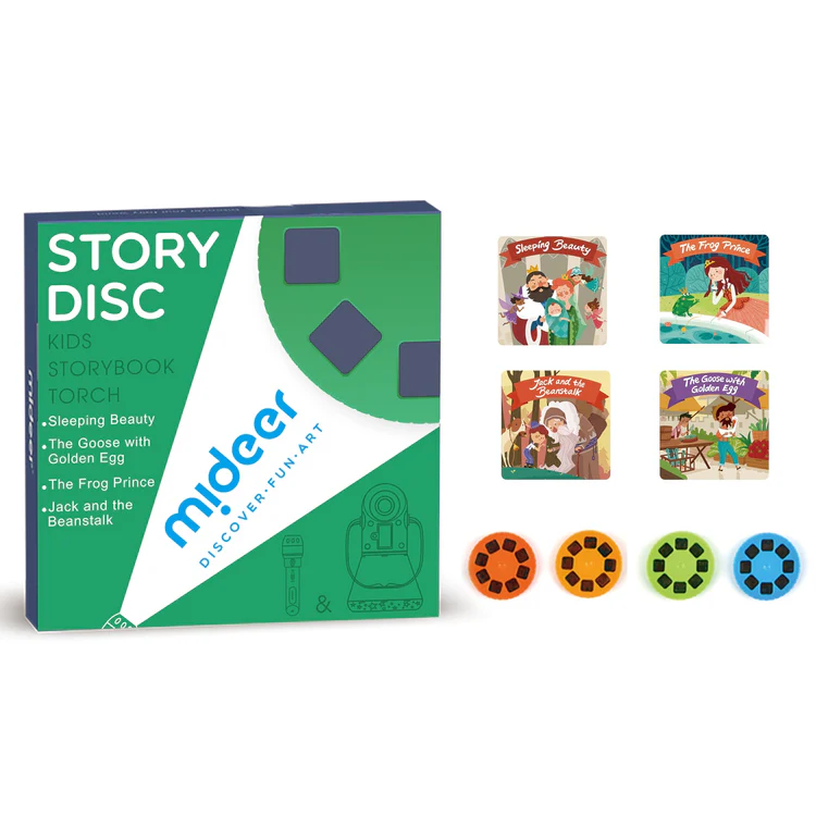 ميدير مشغل الأقراص القصصية السلسة الخامسة لمصباح قصص الأطفال تتضمن: الأميرة النائمة، الإوزة ذات البيضة الذهبية، الأمير الضفدع، جاك والشجرة السحرية.