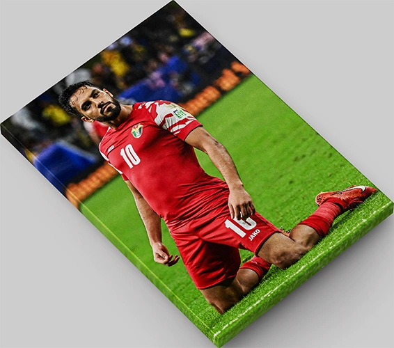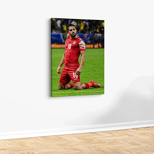 لوحة قماشية مطبوعة لموسى التعمري من نادي الأردن لكرة القدم -A4 حجم