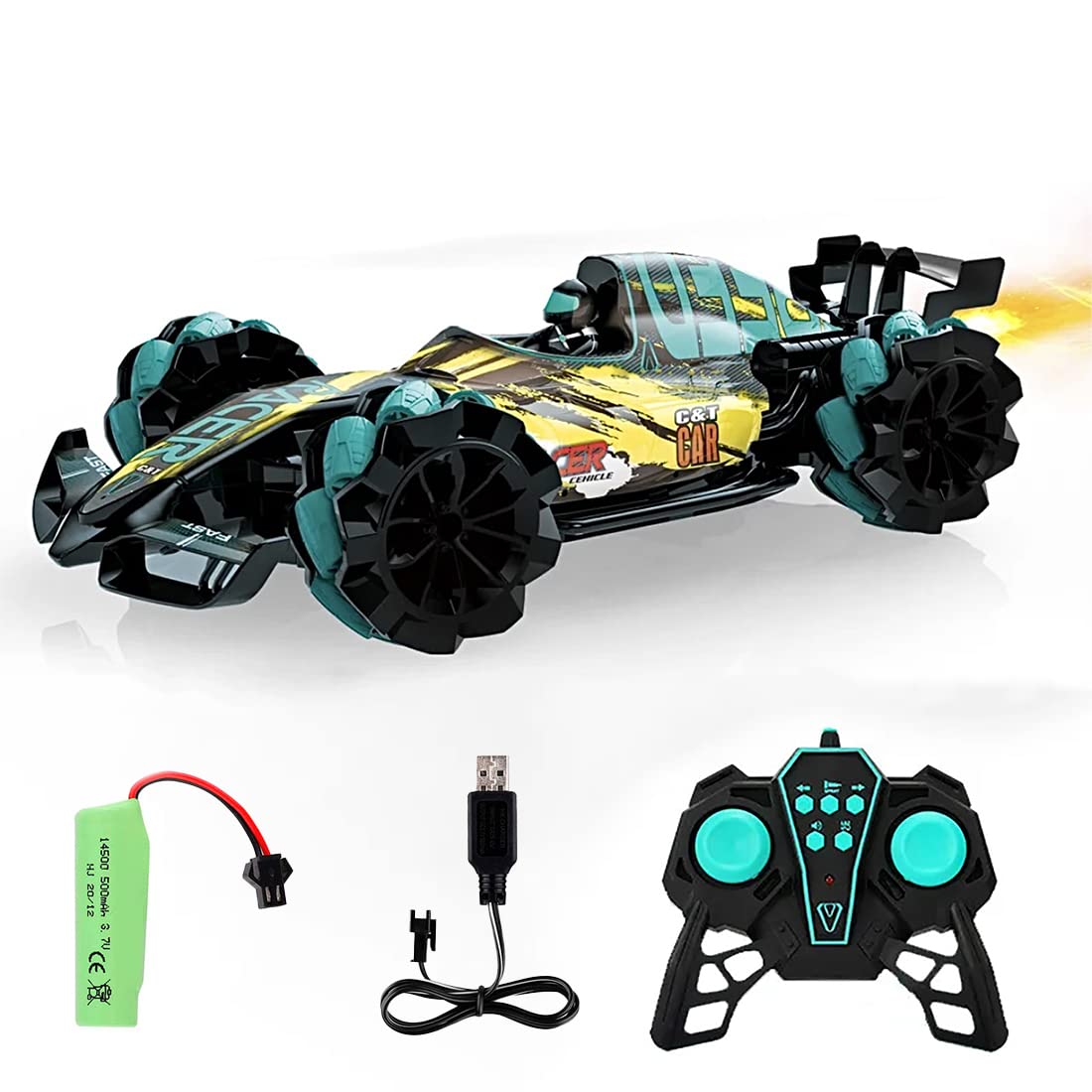 سيارة سباق تحكم عن بُعد مصممة للانجراف! تحتوي على أضواء، وأصوات، ودخان محاكاة من العادم! كما أنها مزودة بإطارات سباق تسمح بالحركة متعددة الاتجاهات. ستكون هدية رائعة لأي عاشق للسباقات.