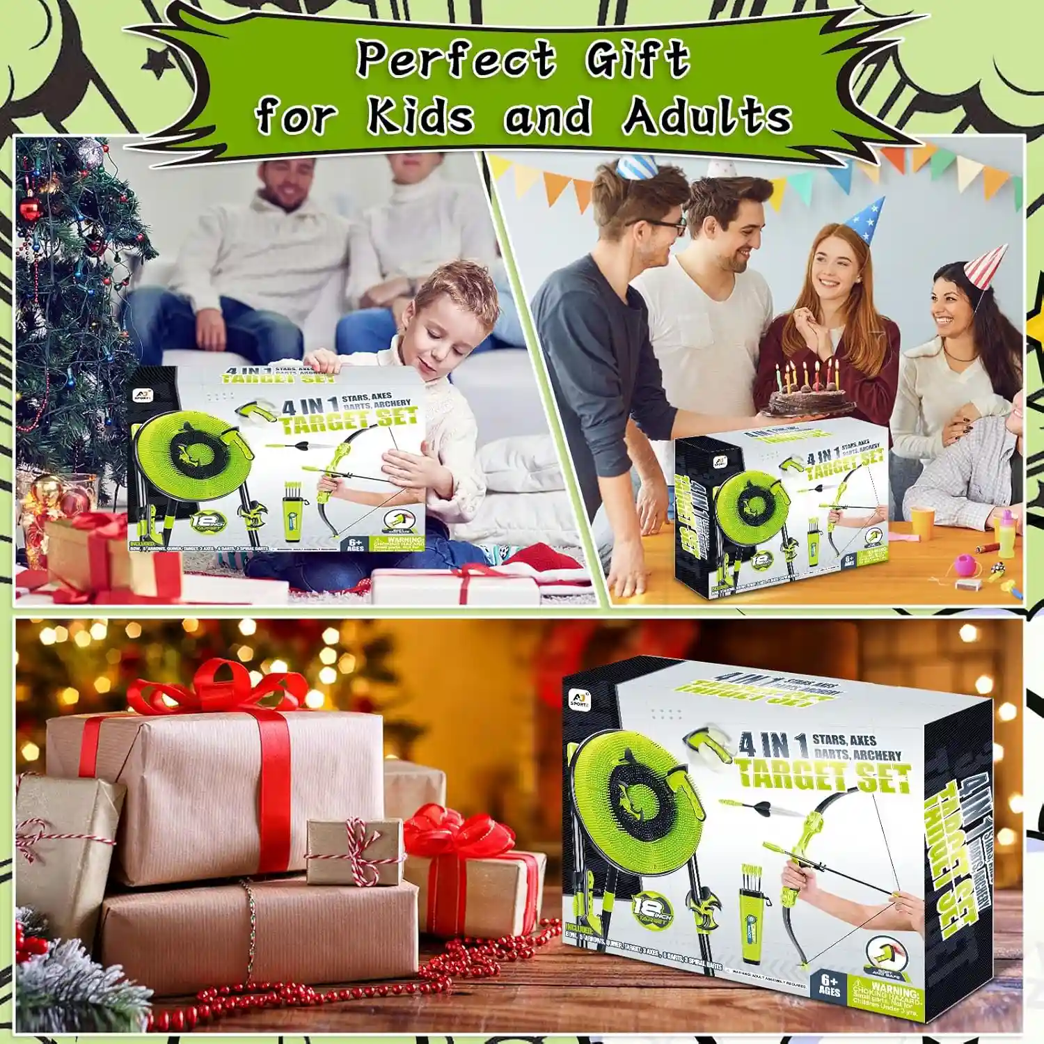 Aojie Sport – 4-in-1 Axe Throwing Game Set with Bow and Arrows – Age 6+
