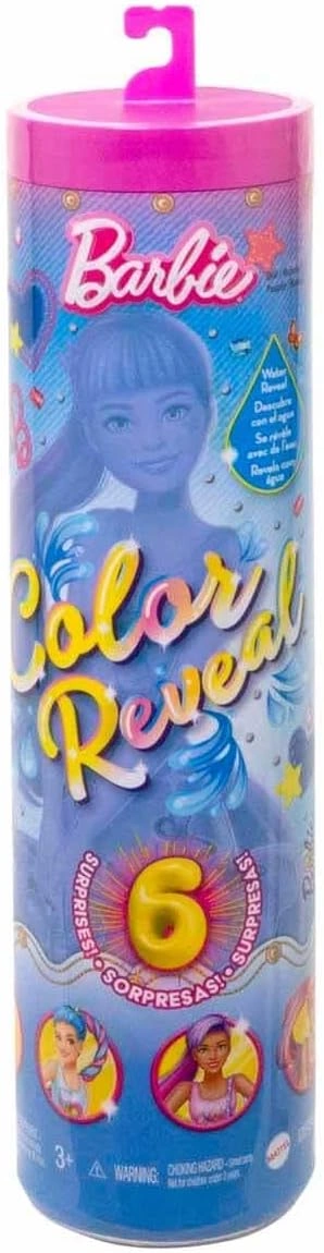Get ready for a surprise-filled experience with the Barbie Color Reveal Totally Denim Series! Each set includes 6 surprises, starting with a mystery doll coated in a pink patchwork design. Just add water to reveal her unique denim-inspired look!