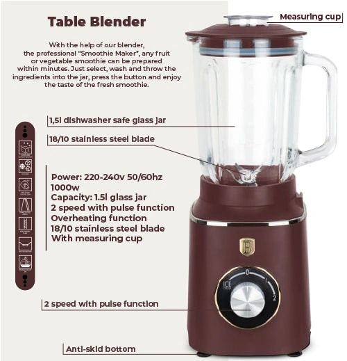 Berlinger Haus 1.5L Glass Table Blender - Leonardo
