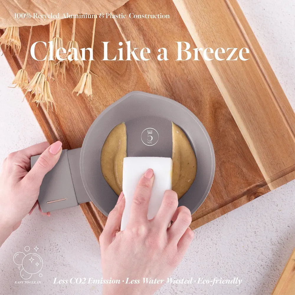 - Forged aluminum thick wall body and a 3-layer non-stick TitanPro coating.