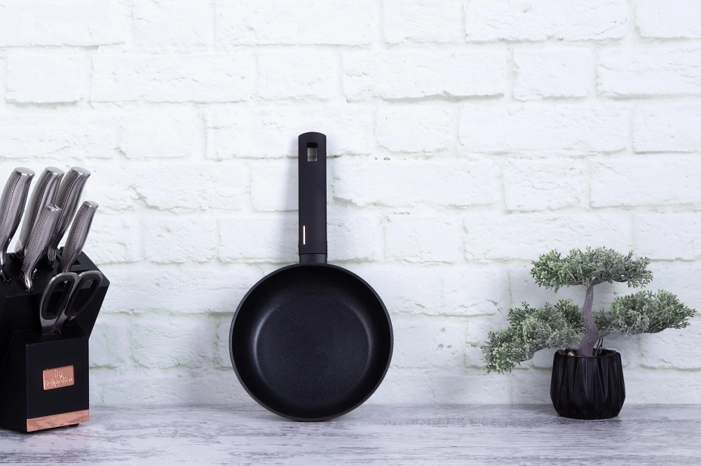 - Forged aluminum thick wall body and a 3-layer non-stick TitanPro coating.