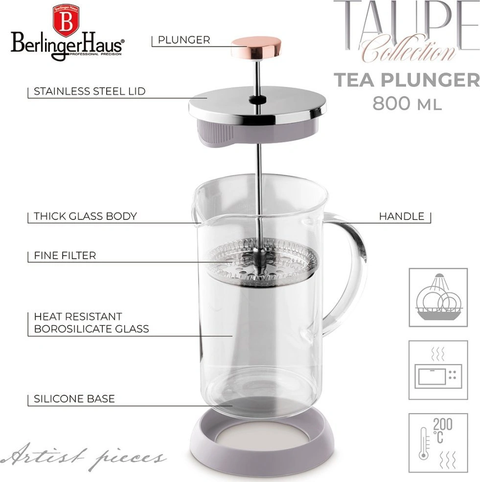 Berlinger Haus 800ml Coffee & Tea Plunger - Taupe Collection