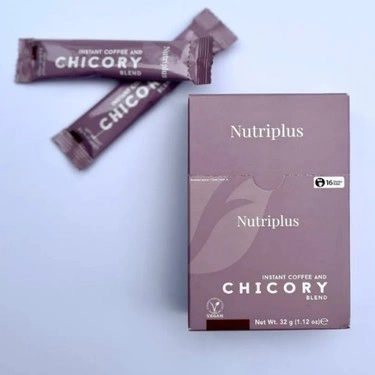 Farmasi Nutriplus NutriCoffee is an instant blend of coffee and chicory roots, offering a delightful beverage with less caffeine than regular coffee. It’s vegan and made from soluble chicory (60%) and soluble coffee (40%), giving it a slightly woody and nutty flavor. Just mix 2 teaspoons with hot water (or prepare iced if preferred), and enjoy black or with your favorite milk or sweetener.