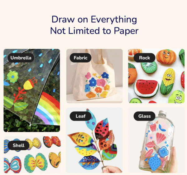 Acrylic Markers - Round Nib are perfect for beginners, offering consistent 1-3mm line width for easy control and precise detailing. The hard nib maintains its shape, ensuring even ink application without bending. These markers are versatile for paper, rock painting, and other projects. They dry quickly, are easily erasable, and come in a practical pull-out package. Safe, non-toxic, and ideal for budding artists.