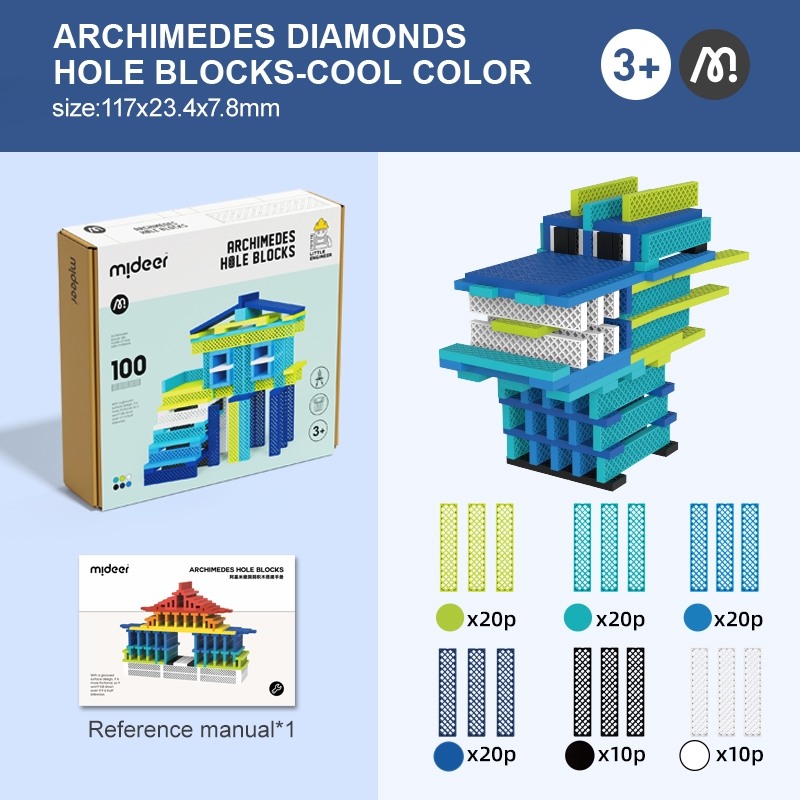 Mideer - Archimedes Diamonds Hole Blocks - Cold color - 100 pieces - Age 3+