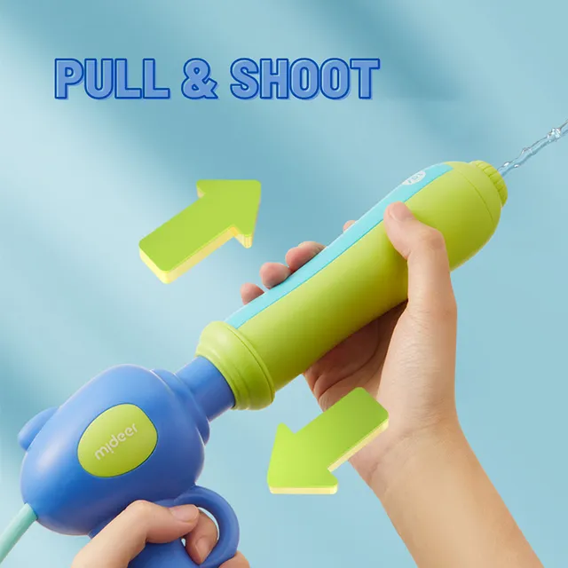 The Mideer Water Gun Backpack features an adjustable shoulder strap designed for kids. Dual shooting modes: direct fire with a range of 5-8 meters and wide-area scatter. The pull-out design promotes hand and brain coordination. Leakproof silicone ring and cover provide added protection. Anti-fold silicone tube ensures smooth water flow. Durable ABS material with impact resistance. Pistol shape for easy grip with a comfortable handle and a cute octopus design.