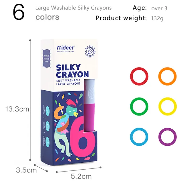 Mideer - washable Silky Crayon - 6 colors - Age 3+