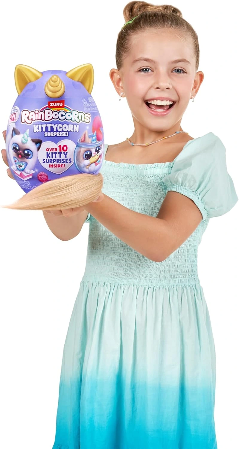 Unbox the magic and meet your new cuddly friend with the Rainbocorns Kittycorn Surprise (Series 9)!