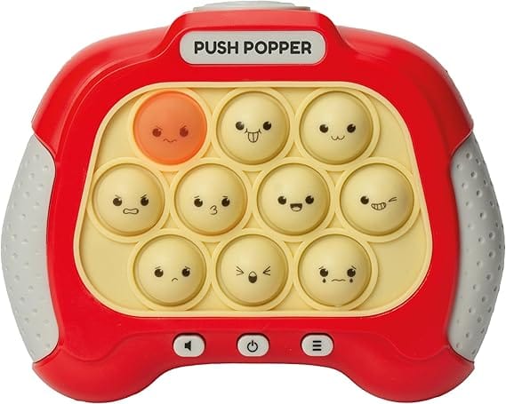 Skill game for your parties! Press the lit Emoji Popper and progress through levels. Flip classic Push Poppers to reset and press the button for a new round of fun.