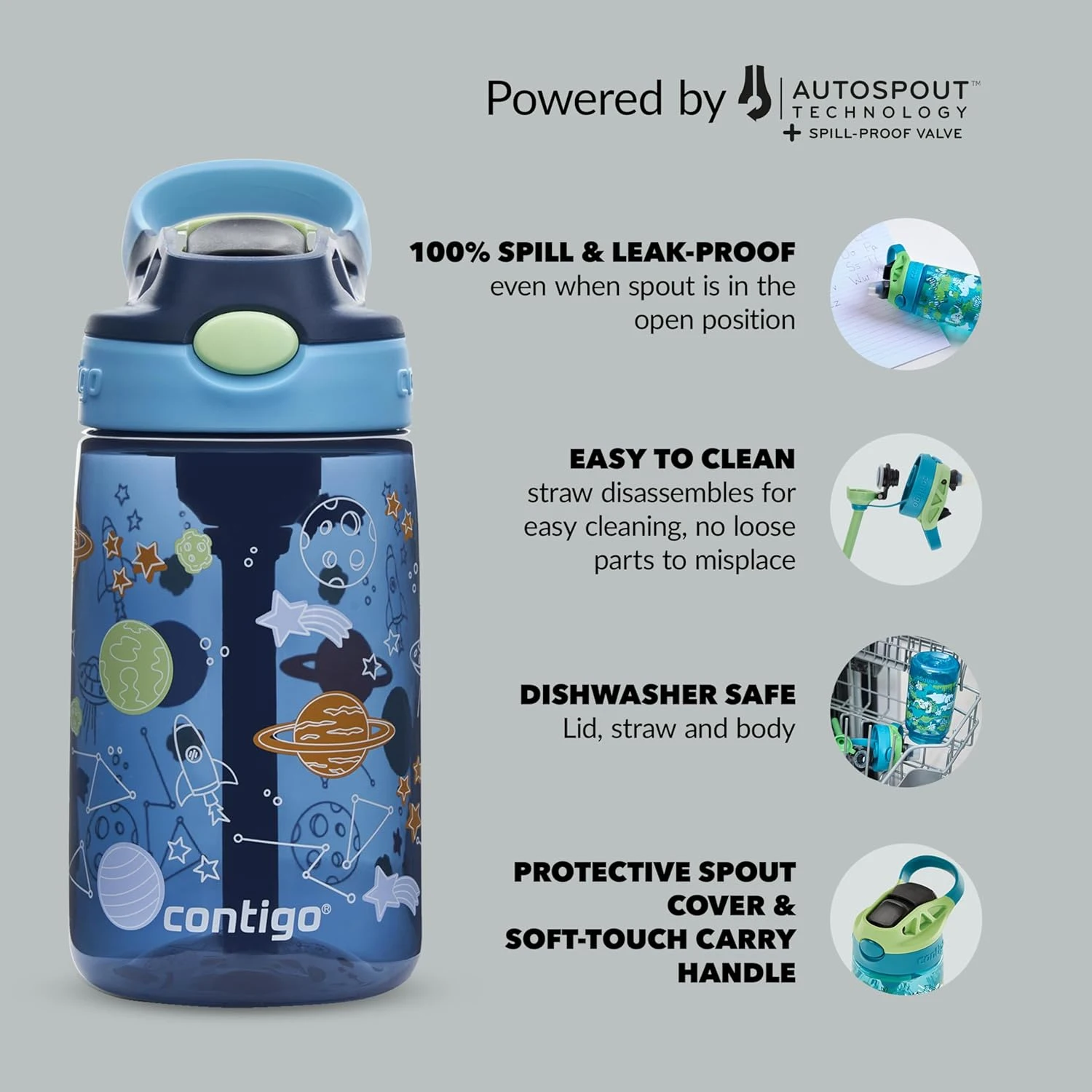 Contigo Autospout Kids Easy-Clean – 420 ml, Blueberry Cosmos