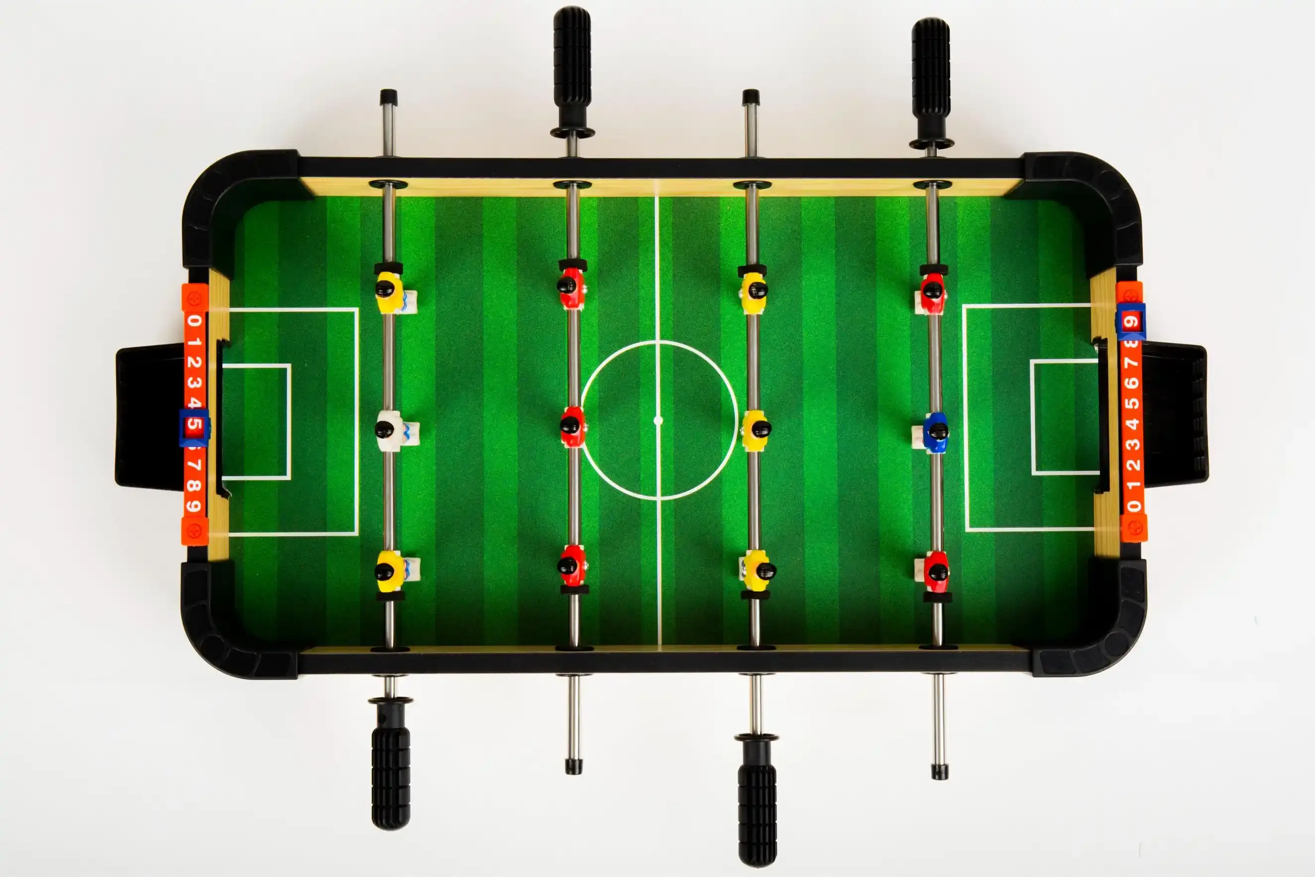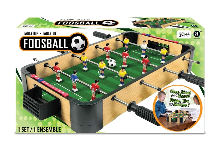 استمتع بكرة القدم على الطاولة مع لعبة كرة القدم الطاولة من أمباسادور – 16" (40 سم). يتحكم اللاعبون في القضبان لتحريك اللاعبين وتسجيل الأهداف، مما يعزز التنسيق بين اليد والعين، ردود الفعل، والتفكير الاستراتيجي. مثالية للأطفال، أمسيات العائلة، والحفلات، وتوفر ساعات من المرح التفاعلي الممتع.