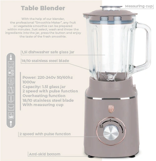 خلاط زجاج سعة 1.5 لتر من Berlinger Haus - توب