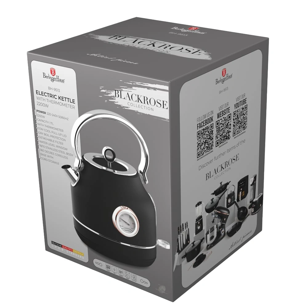 سخان ماء كهرباء ستيل 1.7 لتر من Berlinger Haus - بلاك-روز