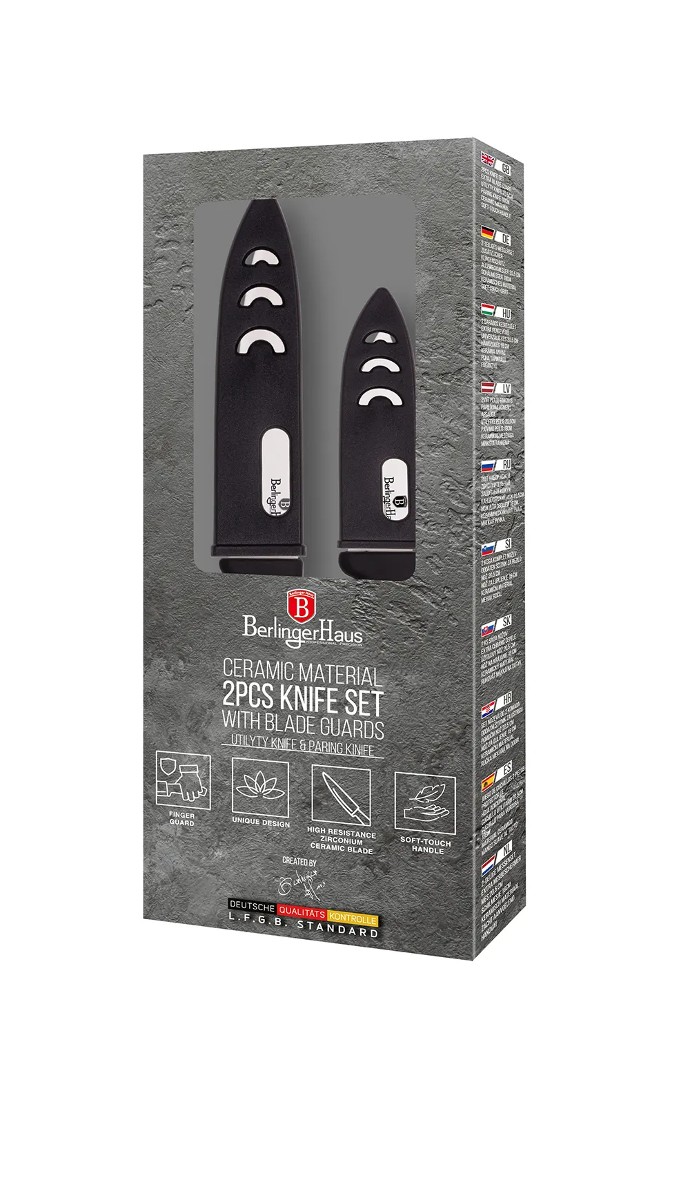 طقم سكاكين سيراميك قطعتين مع أغطية من Berlinger Haus - أسود