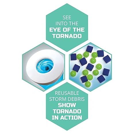 شاهد قوة الطبيعة الأم مع مختبر الأعاصير من ديسكفري. أنشئ وتعرّف على أعاصير مذهلة وتعلّم عن علم الأرصاد والفيزياء الجوية من راحة منزلك. استخدم الحطام القابل لإعادة الاستخدام لتتبع قوة الدمار التي تولدها الأعاصير، واستمتع بتجربة بصرية وسمعية واقعية للعواصف مع 5 سرعات مختلفة مسبقة الضبط وأصوات عاصفة حقيقية. سهل الاستخدام ومصمم للأطفال، فقط قم بالتوصيل واستمتع بالتجربة التعليمية بدون فوضى، سواء في المنزل أو في الصفوف الدراسية أو في المعارض العلمية.