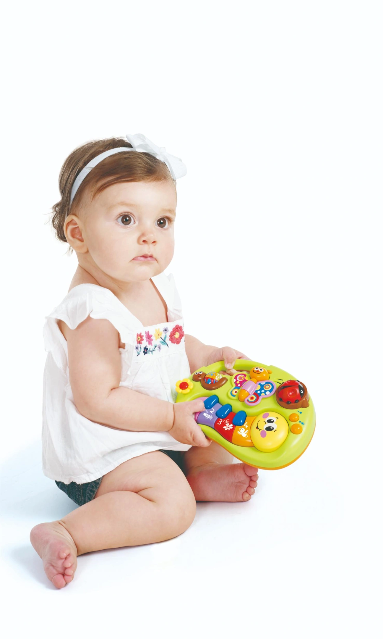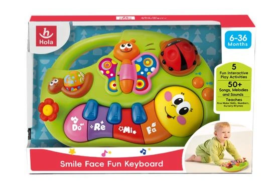 لوحة المفاتيح المرحة بوجه مبتسم من هولا هي لعبة ممتعة تعرف الأطفال على الموسيقى والأصوات من خلال الأزرار الملونة والألحان المرحة. تساعد على تنمية الحواس، التناسق بين اليد والعين، والمهارات الموسيقية المبكرة، وتعد مثالية للعب الإبداعي والتعلم التفاعلي.