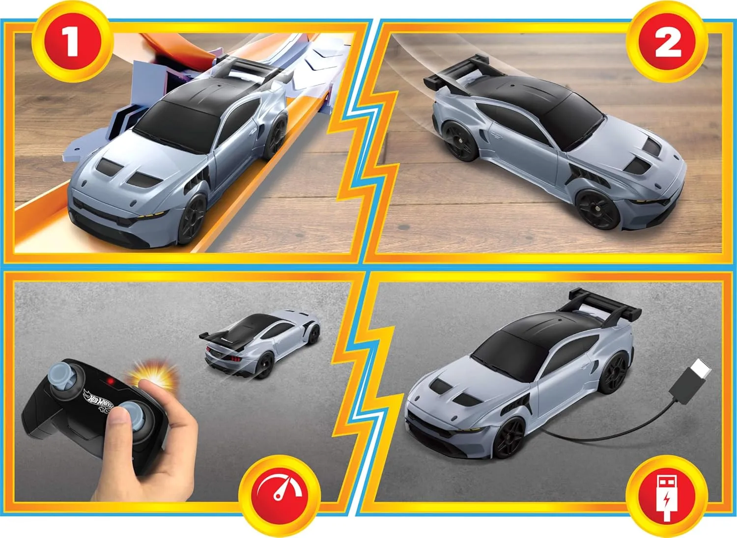 يعمل جهاز التحكم عن بعد هوت ويلز لسيارة فورد موستانج جي تي دي بمقياس 1:64 على رفع مستوى سيارات الألعاب التي تعمل بالتحكم عن بعد بتفاصيل رائعة ودقة قيادة مذهلة.