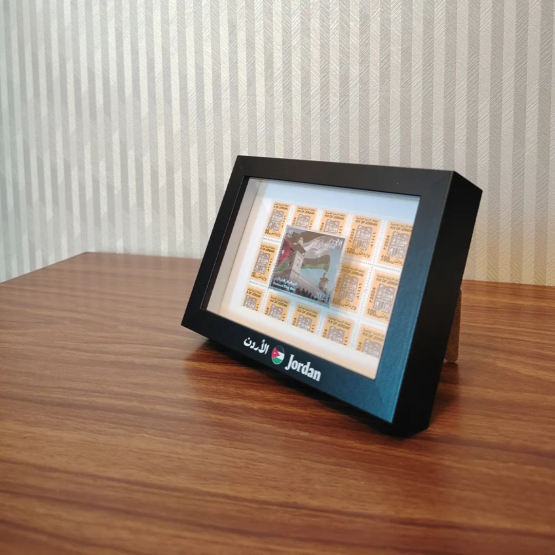 قطعة مؤطرة تحتوي على طابع بريدي أردني أصلي، يرمز للاتصال والتاريخ والرحلات التي شكّلت الأمة. معروضة بأناقة، وتعتبر هدية راقية وذات معنى أو قطعة ديكور مميزة للمنزل أو المكتب.