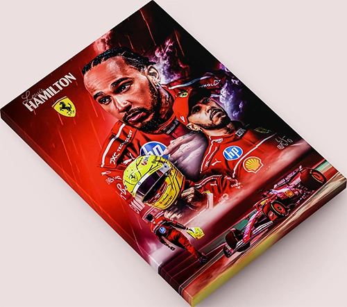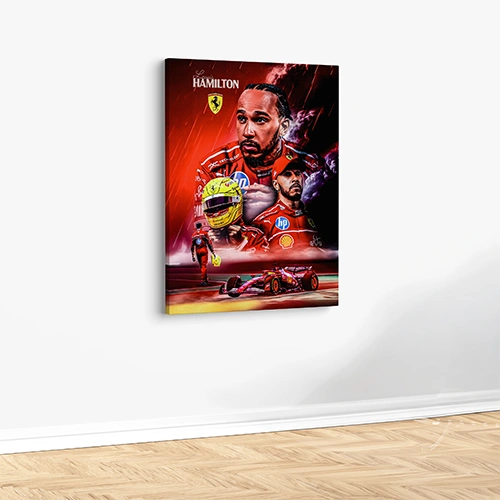 رتقِ بديكور منزلك مع لوحة قماشية مطبوعة بعنوان "لويس هاميلتون من فريق فيراري للفورمولا 1". لوحه تبرز سرعته الأسطورية وإصراره القوي وحضوره المهيب على الحلبة، لتكون إضافة مثالية لكل عشاق الفورمولا 1 وهواة جمع التحف الرياضية.