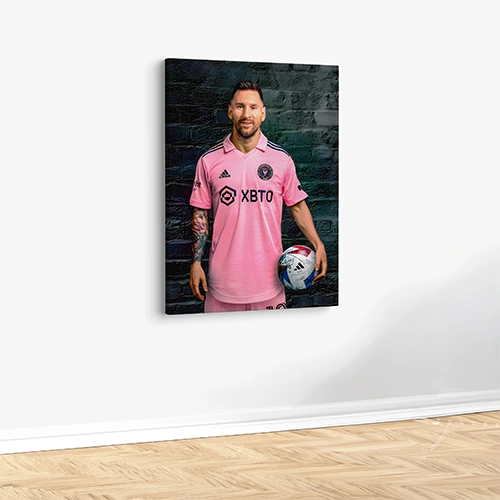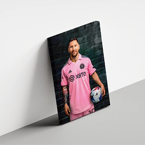 ارتقِ بديكور منزلك مع لوحة قماشية مطبوعة للاعب "ليونيل ميسي من نادي إنتر ميامي". تبرز هذه اللوحة شغف ميسي وحضوره الأيقوني مع إنتر ميامي، اللوحة مثالية لعشاق كرة القدم .