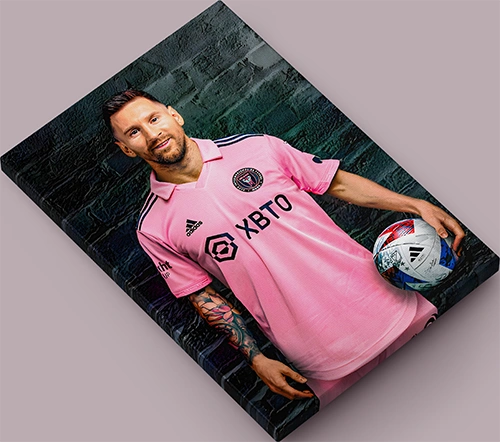 لوحة قماشية مطبوعة للاعب ليونيل ميسي من نادي إنتر ميامي لكرة القدم- A4 حجم