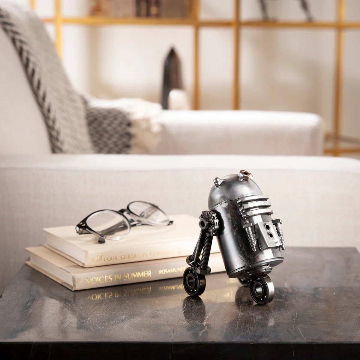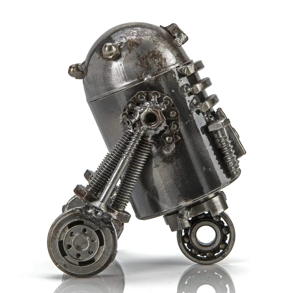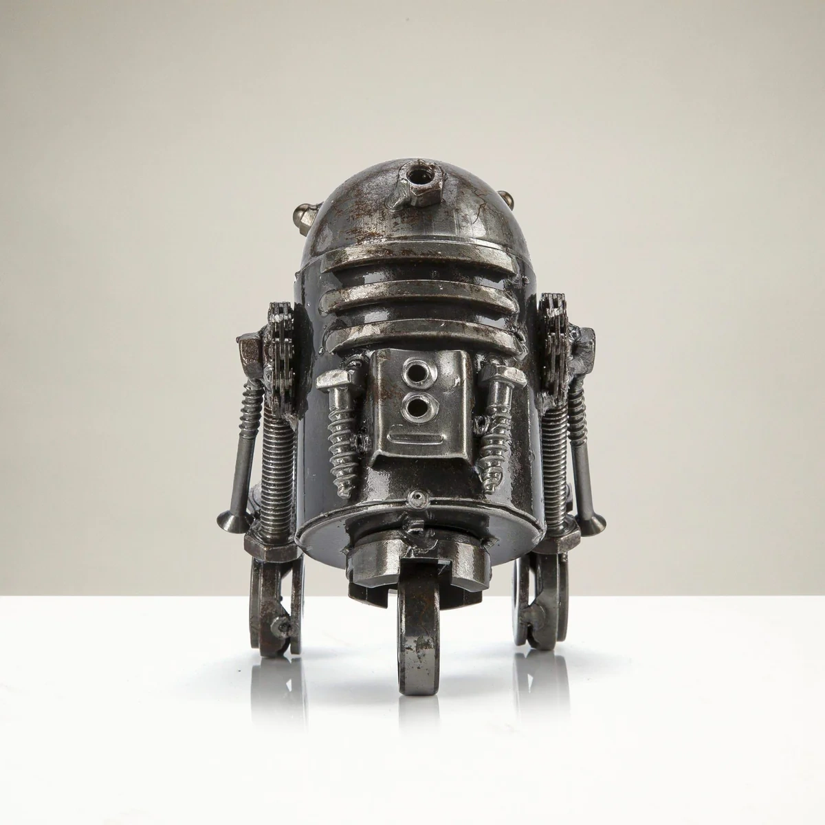 منحوتة آر تو دي تو المعدنية المعاد تدويرها من ميتال ارت هي قطعة فنية أصلية مصنوعة يدويًا من 30 قطعة معدنية معاد تدويرها ومثبتة بـ 85 لحام متقن. كل قطعة فريدة، مما يجعلها إضافة رائعة لديكور المنزل، المكتب أو المكتبة، كما تُعد هدية مبتكرة ومميزة لمحبي ستار وورز. ملاحظة: قد تختلف بعض التفاصيل واللحامات بشكل طفيف لتعكس تفرد كل قطعة.