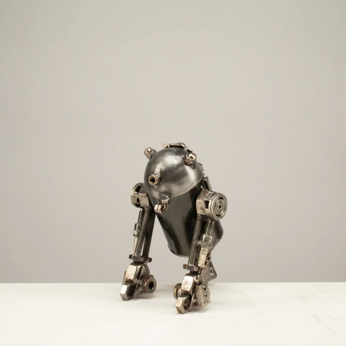 قطعة فنية أصلية مصنوعة يدويًا من ميتال ارت مستوحاة من آر 2 دي 2. تم لحامها يدويًا من 58 قطعة معدنية معاد تدويرها ودمجها معًا بواسطة 125 نقطة لحام. هذا العمل الفني المعدني المعاد تدويره مثالي لمنزلك، مكتبك، أو رف الكتب، ويعد هدية ممتازة وفريدة من نوعها. كل قطعة فريدة، لذا قد توجد اختلافات بسيطة في التفاصيل ونقاط اللحام.