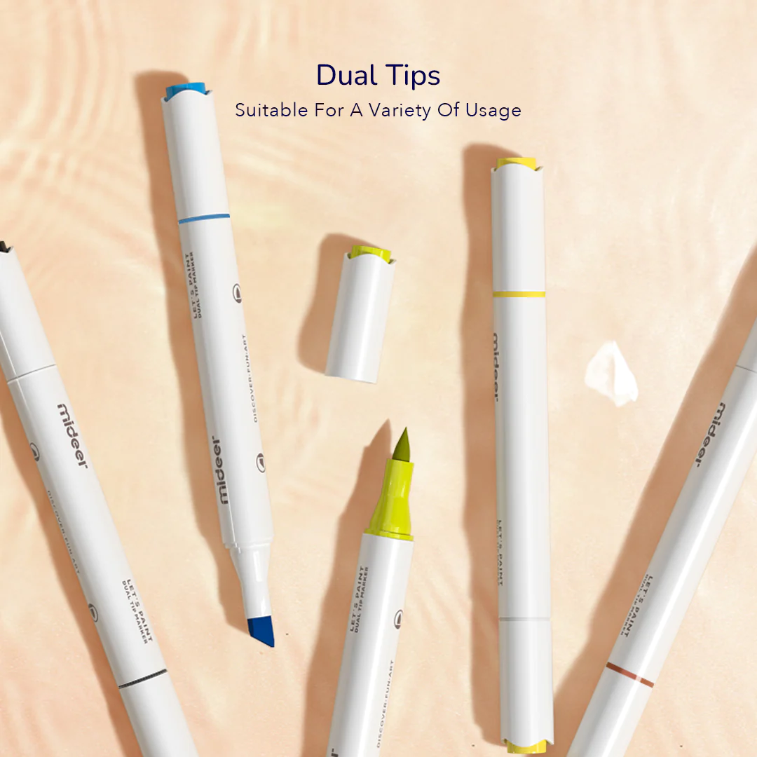 هذه السلسلة من الأقلام لها تصميم طرفين لتلبية احتياجات الرسم المختلفة. الحبر على أساس الماء أكثر أمانًا للأطفال، والتخزين السهل والعبوة المحمولة، مثالية للمدرسة. يوفر الحبر الثابت تجربة إبداعية أفضل للأطفال. العدد 60 لونًا