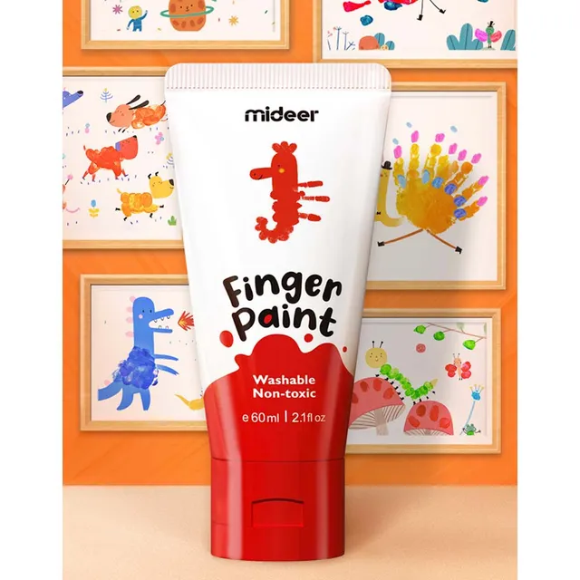 ألوان الأصابع من ميدير له قوام كريمي آمن وغير سام، وسهل التنظيف! هذه الألوان لا تترك أي بقع على الجلد بمجرد غسله بالصابون والماء. الألوان القابلة للغسل متوفرة في ٦ أنابيب بألوان زاهية.