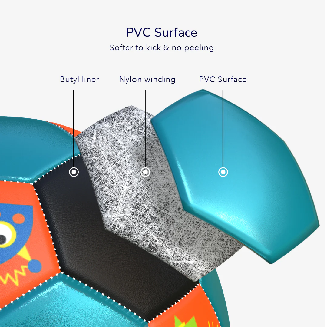 مصنوعة من مواد ثلاثية الطبقات عالية الجودة، مما يجعلها قوية ومتينة لضمان استمرار استخدامها لفترة طويلة. إنها خيار ممتاز لممارسة التمرير والتسديد، وتساعد الأطفال في تطوير مهاراتهم الحركية أثناء الاستمتاع باللعبة.