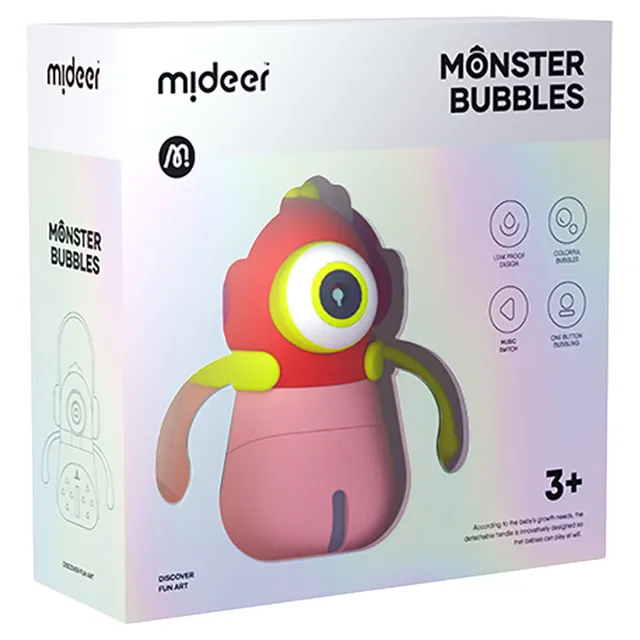 لقد كانت الفقاعات من أكثر الألعاب شهرة بين الأطفال على مر السنين. لماذا لا تحيط نفسك بسحابة من الفقاعات السعيدة؟ مع محرك هادئ ولكن قوي، يصب وحش الفقاعات من ميدير ما يكفي من الفقاعات لملء الغرفة! سيبقي الأطفال مستمتعين لساعات!