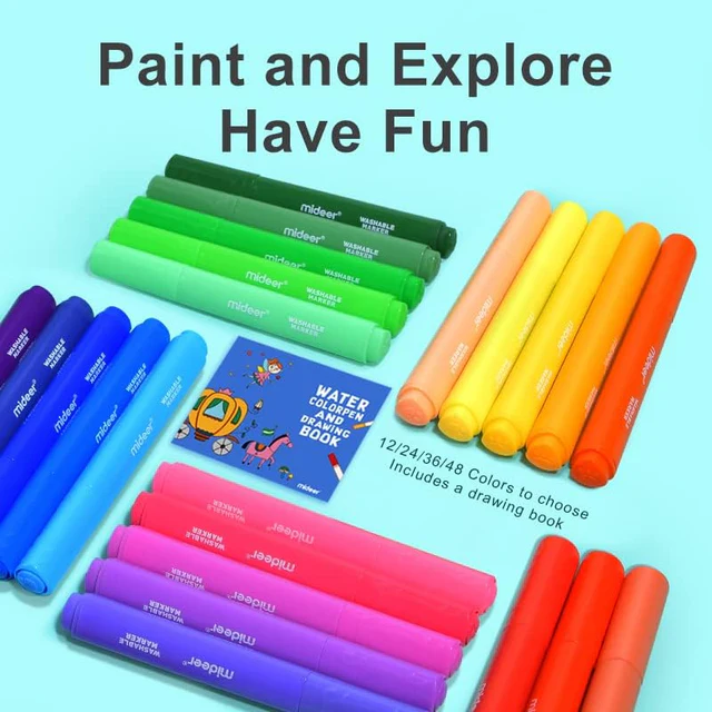 هذه الأقلام القابلة للغسل سهلة الاستخدام من ميدير مثالية لأيدي الصغار ورائعة لتعزيز الإبداع والخيال. آمنة، غير سامة، قابلة للغسل. 🎨