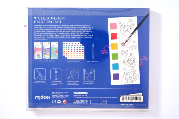 مجموعة "الرسم بالألوان المائية" مصممة لتوفير تجربة فنية شاملة ومحمولة للأطفال. تتضمن هذه المجموعة الكاملة كتاب قصص، وألوان، وفرشاة، مما يجعلها مثالية للفنانين الصغار للتعبير عن إبداعهم.