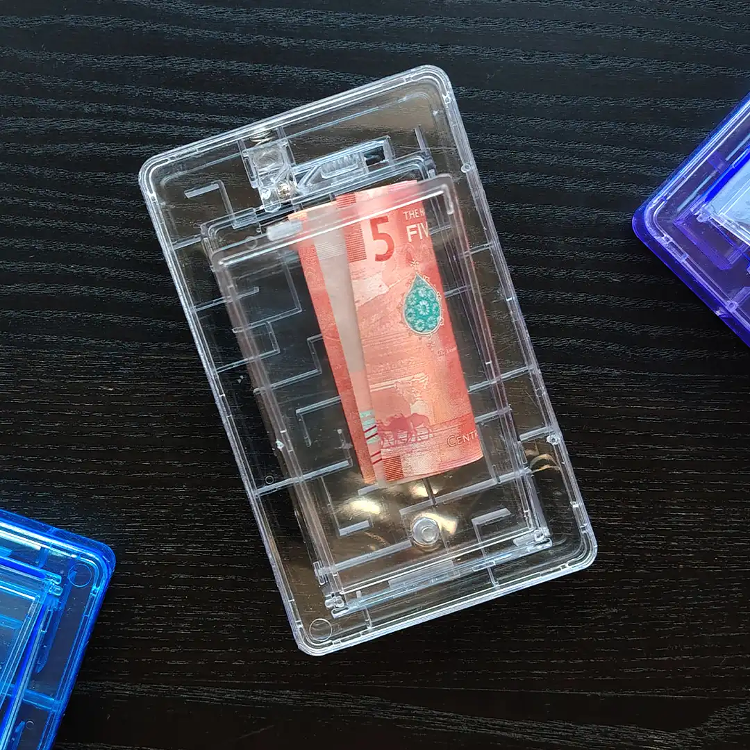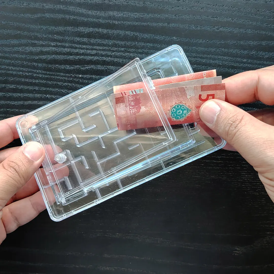 حوّل أي هدية بسيطة إلى مغامرة لا تُنسى مع صندوق لغز المتاهة النقدية الشفاف! هذا الصندوق الشفاف الذكي يتطلب من المستلم حل متاهة ممتعة قبل أن يتمكن من "فتح" المبلغ النقدي أو بطاقة الهدايا الخاصة بهم. مثالي لأعياد الميلاد، العيد، الكريسماس، التخرج، أو أي مناسبة تريد فيها إضافة لمسة مرحة وبعض الضحكات الحقيقية. شاهد تركيزهم (وربما القليل من الإحباط!) يتحول إلى فرحة خالصة عند حل المتاهة أخيرًا.