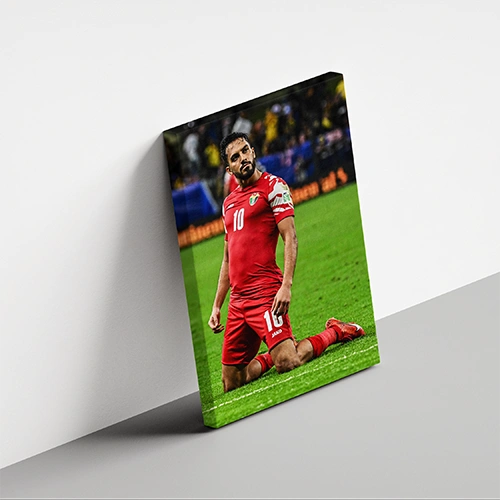 لوحة قماشية مطبوعة لموسى التعمري من نادي الأردن لكرة القدم -A4 حجم