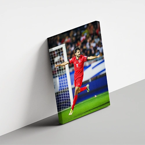 رتقِ بديكور منزلك مع لوحة قماشية مطبوعة بشخصيه "يزن النعيمات من نادي الأردن لكرة القدم". تُبرز هذه اللوحةمهارة النعيمات وشغفه وحضوره الأيقوني في الملعب، لوحة مثالية لعشاق كرة القدم