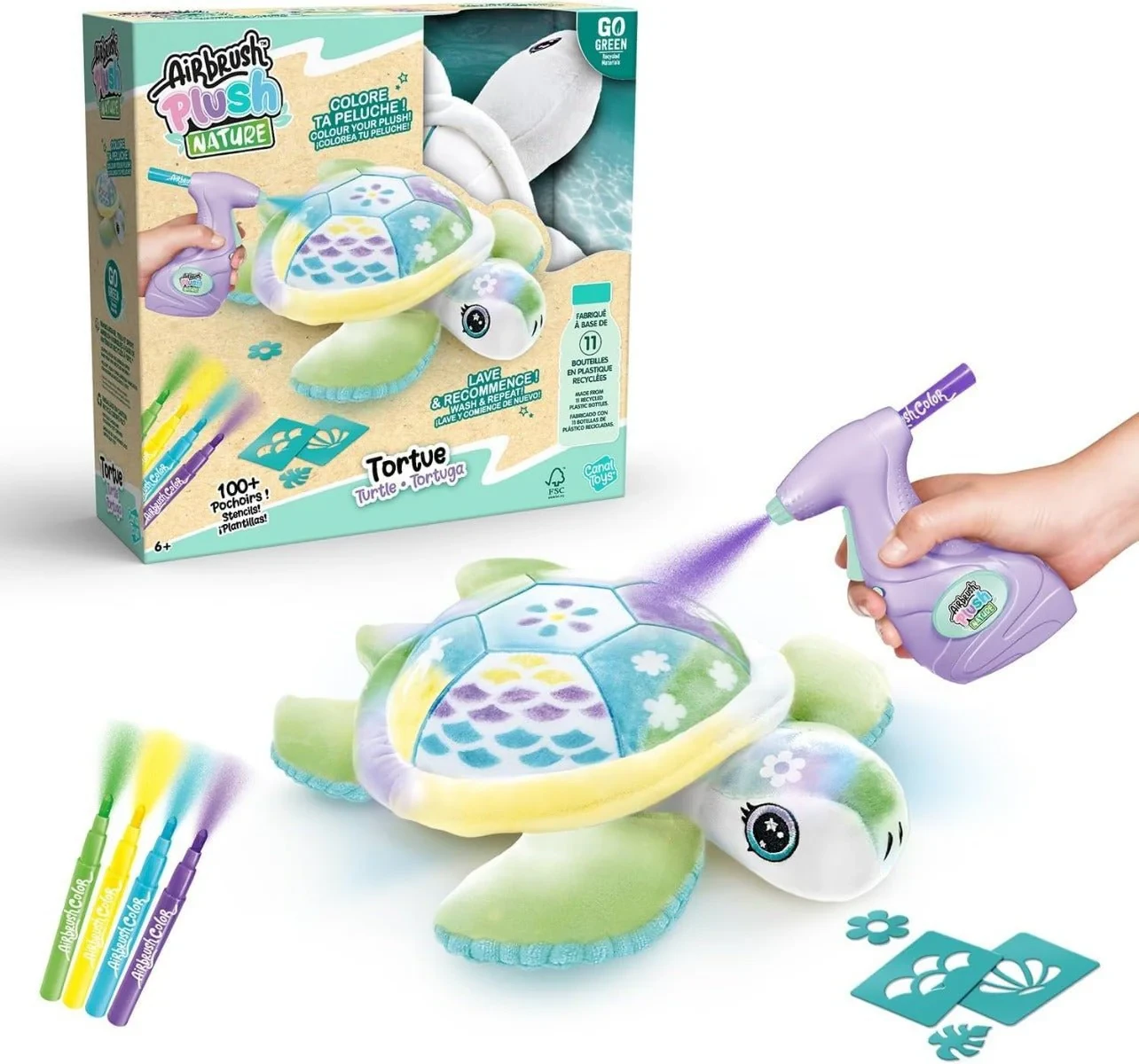 Spark your child’s creativity with the Airbrush Plush Nature – Green Turtle! Use the included airbrush markers to decorate the soft, cuddly turtle with your own unique designs. The washable and reusable plush lets kids wash and recolor it over and over again for endless creative fun.