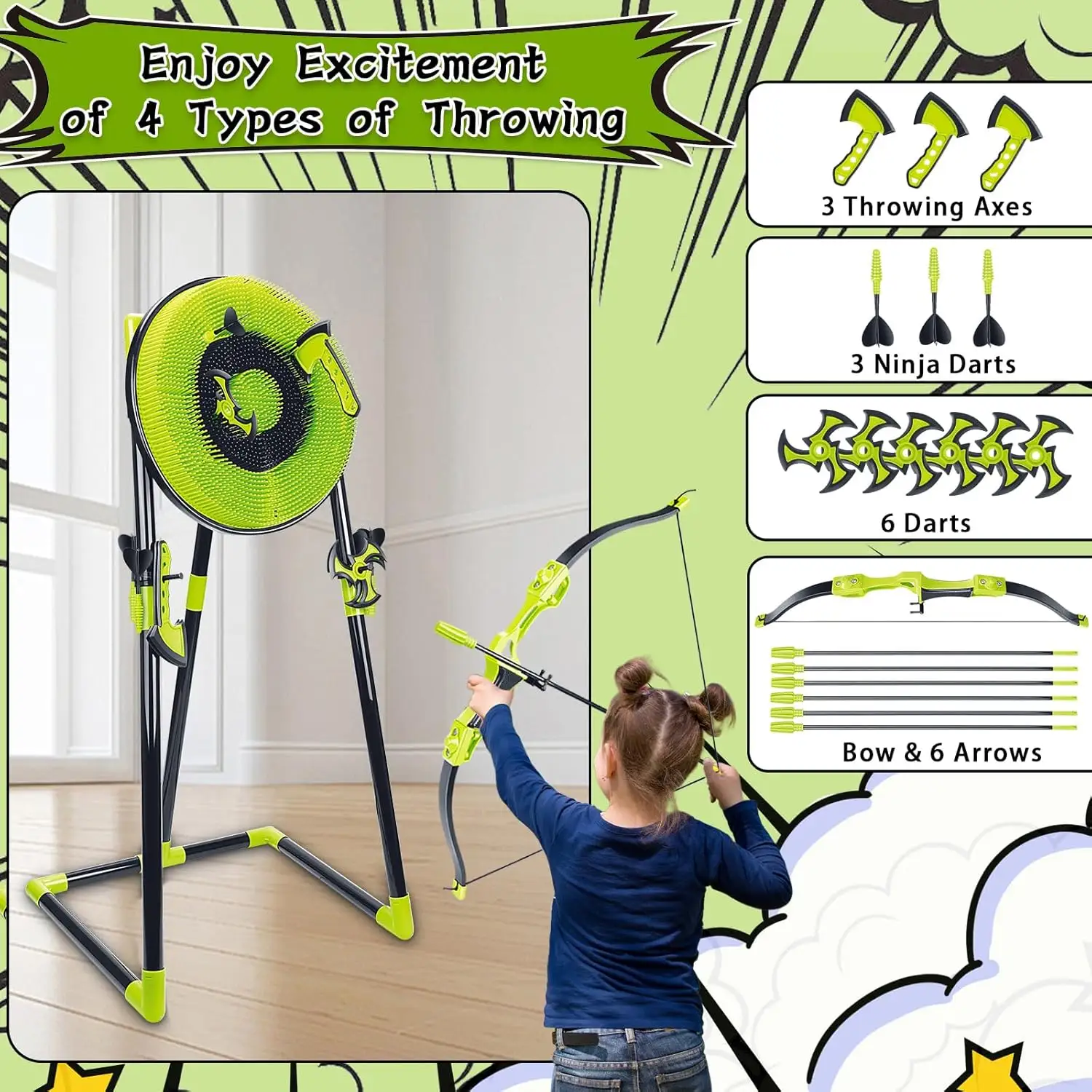 Aojie Sport – 4-in-1 Axe Throwing Game Set with Bow and Arrows – Age 6+
