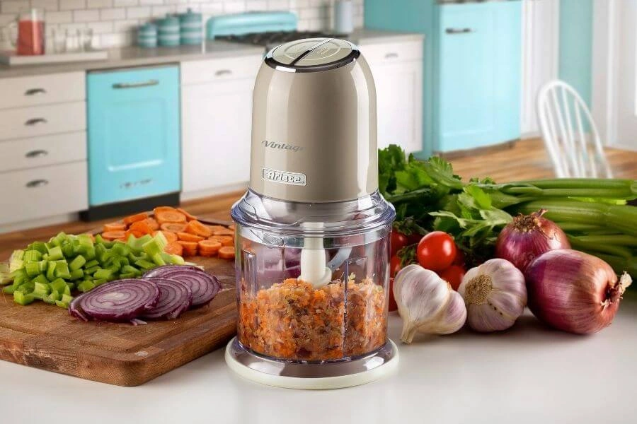 - Can chop vegetables, meat, cheese, bread, dried fruit, ice.
