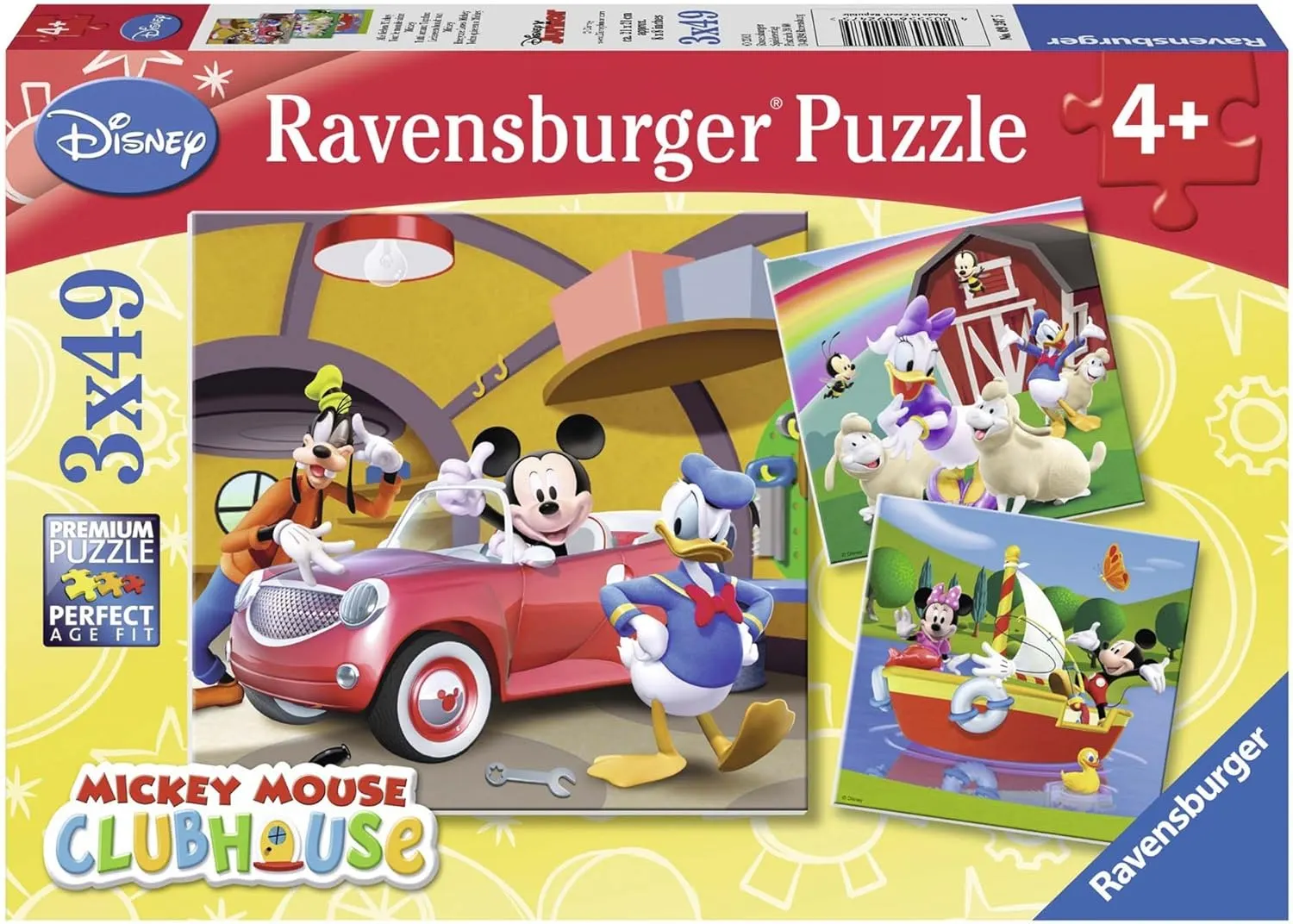 Enjoy assembling 3 fun puzzles from Mickey Clubhouse! Each puzzle has 49 pieces featuring colorful scenes of Mickey and friends at the clubhouse. Perfect for kids and adults to develop focus and fine motor skills.