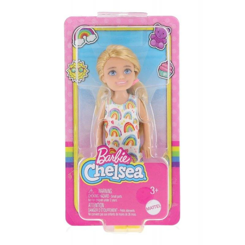 Barbie – Chelsea Doll in Rainbow-Print Dress and Yellow Shoes (Ages 3–7)