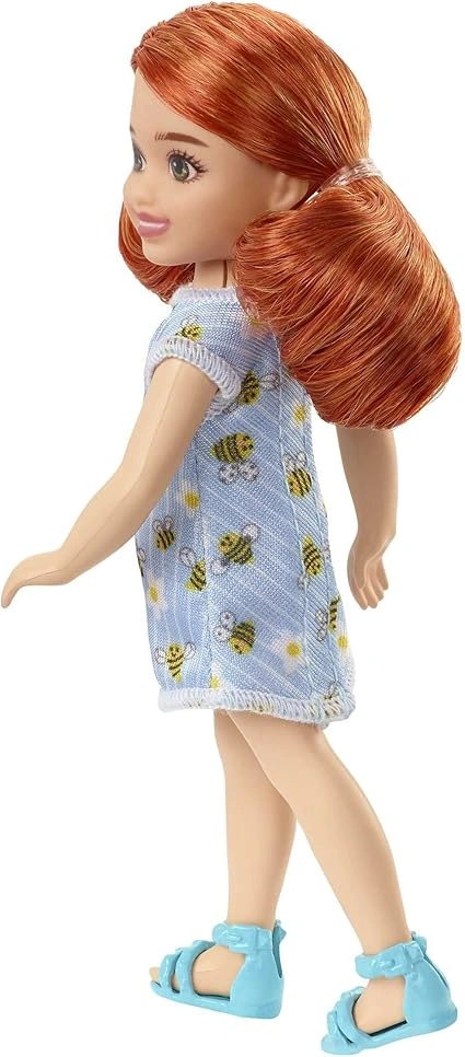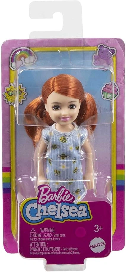 This adorable 6-inch Chelsea doll wears a colorful rainbow-print dress and bright yellow shoes, perfect for endless storytelling fun. With her red hair styled in cute pigtails and her cheerful outfit, Chelsea is ready for any adventure.