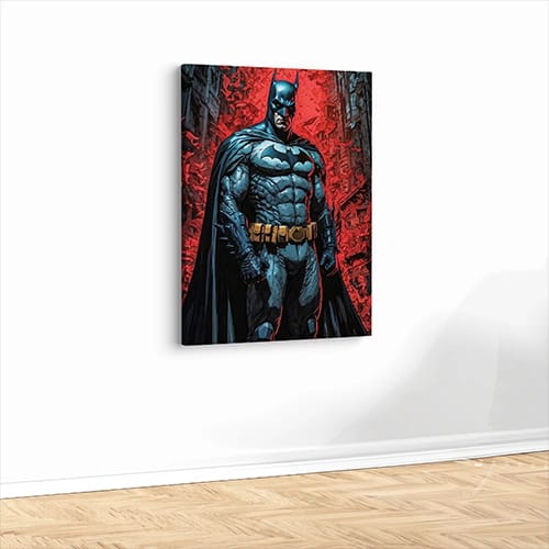 Elevate your decor with the “Batman” printed canvas. This striking artwork captures the Dark Knight’s iconic presence and heroic aura, making it a perfect addition for comic book enthusiasts and collectors alike